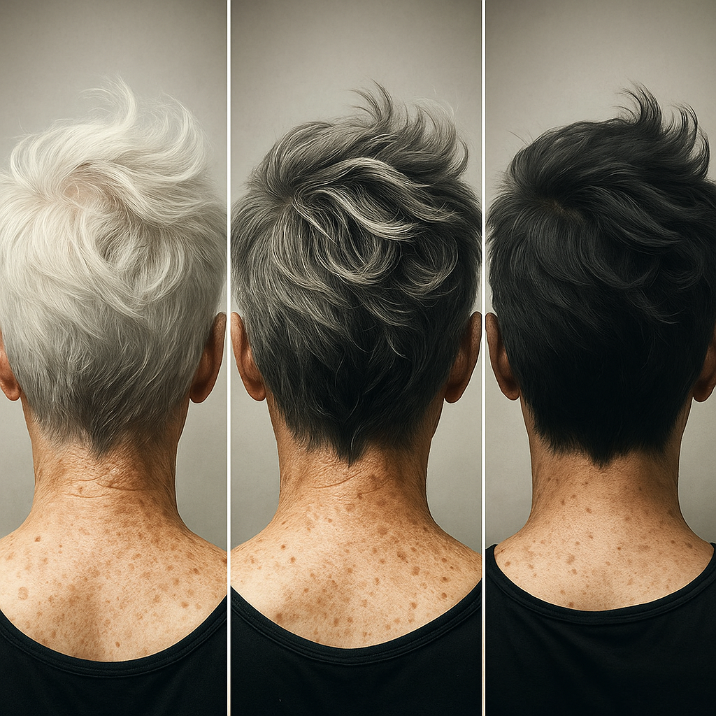 תגיד ביי לשיער האפור כשאתה משחזר את הצבע הטבעי ומחזק שורשים לצמיחה מלאה יותר.